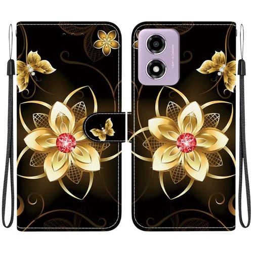 Funda de Cuero Motorola Moto G04S/E14 con Dibujo de Colores y Textura de Cristal (Flor Dorada)