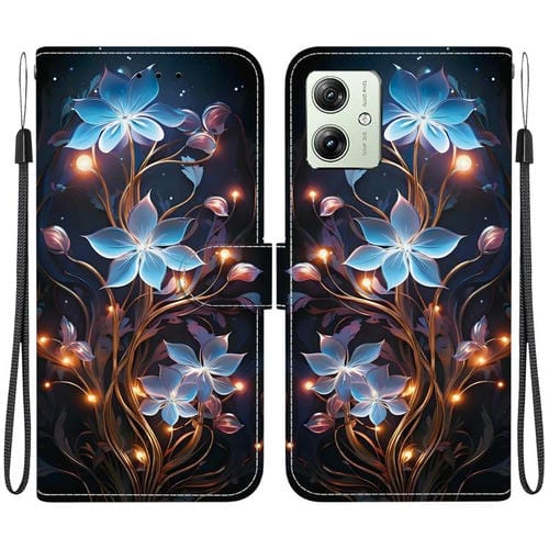 Funda de Cuero Motorola Moto G54 con Dibujo de Colores y Textura de Cristal (Flor de Linterna Pequeña)