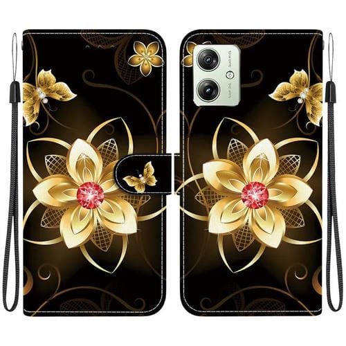 Funda de Cuero para Motorola Moto G54 con Dibujo de Colores y Textura de Cristal (Flor Dorada)
