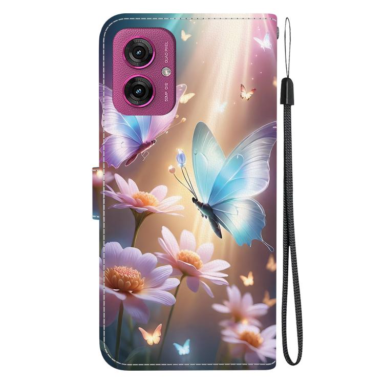 Funda de Cuero para Motorola Moto G55 con Dibujo de Colores y Textura de Cristal (Mariposa, Amor y Flores)