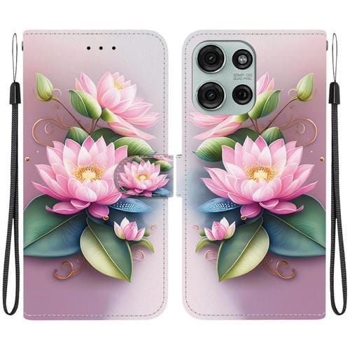 Funda de Cuero para Motorola Moto G75 5G con Dibujo de Colores y Textura de Cristal (Orquídea Negra)