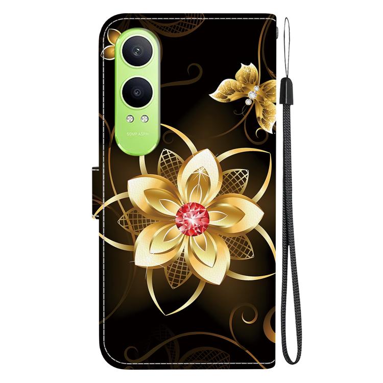 Funda de Cuero para OnePlus Nord CE4 Lite con Dibujo de Colores y Textura de Cristal (Flor Dorada)