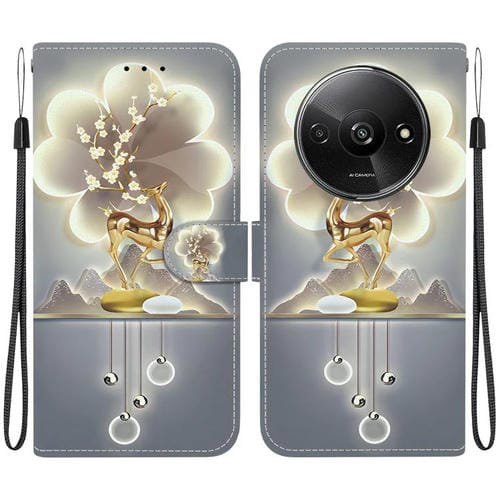 Funda de Cuero con Dibujo de Colores y Textura de Cristal para Redmi A3 (Ciervo Sika)