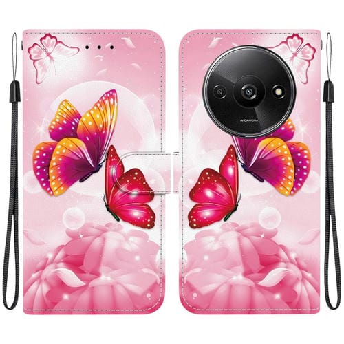 Funda de Cuero con Dibujo de Colores y Textura de Cristal para Redmi A3 (Mariposas Rosas)