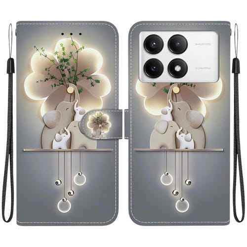 Funda de Cuero con Dibujo de Colores y Textura de Cristal para Redmi K70/K70 Pro (Elefantes)