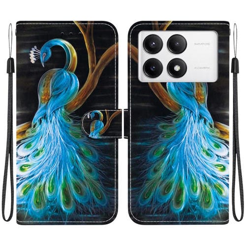 Funda de Cuero con Dibujo de Colores y Textura de Cristal para Redmi K70/K70 Pro (Pavo Real)