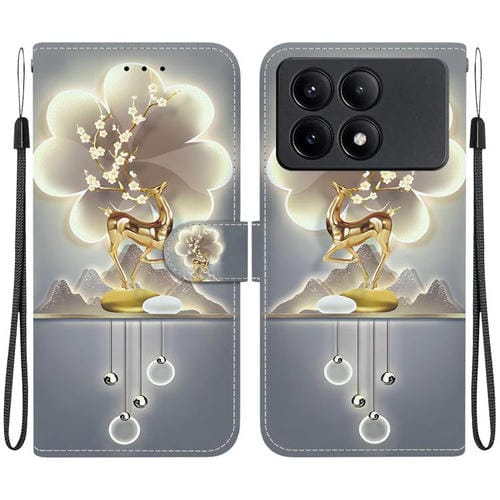 Funda de Cuero con Dibujo de Colores y Textura de Cristal para Redmi K70E/Poco X6 Pro (Ciervo Sika)