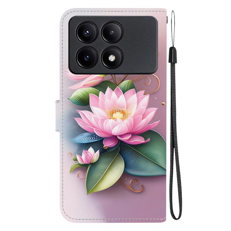 Funda de Cuero con Dibujo de Colores y Textura de Cristal para Redmi K70E/Poco X6 Pro (Lotus)