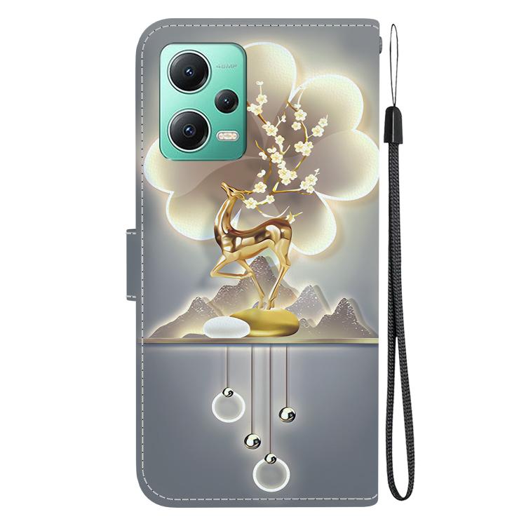 Funda de Cuero con Dibujo de Colores y Textura de Cristal para Redmi Note 12 5G/Poco X5 (Ciervo Sika)
