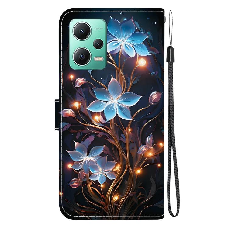 Funda de Cuero con Dibujo de Colores y Textura de Cristal para Redmi Note 12 5G/Poco X5 (Flor de Linterna Pequeña)