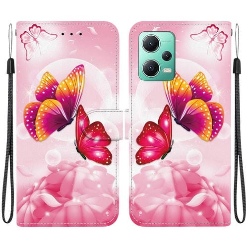 Funda de Cuero con Dibujo de Colores y Textura de Cristal para Redmi Note 12 5G/Poco X5 (Mariposas Rosas)