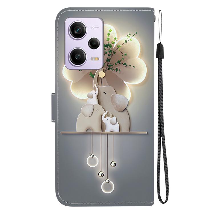 Funda de Cuero con Dibujo de Colores y Textura de Cristal para Redmi Note 12 Pro/Poco X5 Pro (Elefantes)