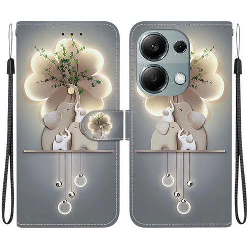 Funda de Cuero con Dibujo de Colores y Textura de Cristal para Redmi Note 13 Pro 4G / Poco M6 Pro (Elefantes)