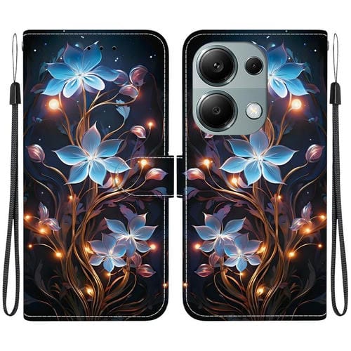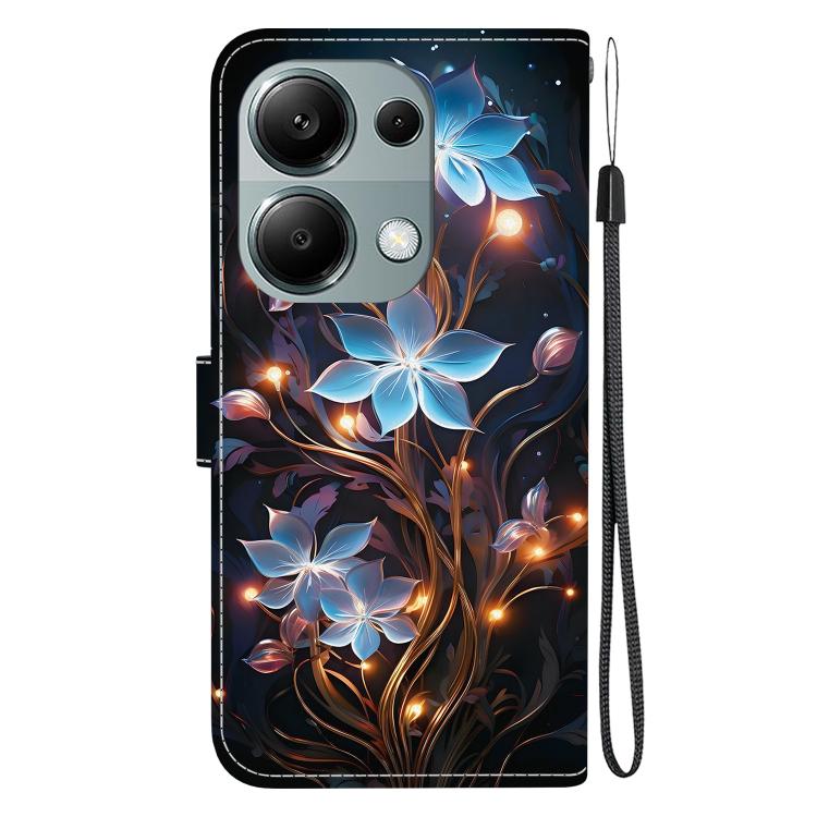 Funda de Cuero con Dibujo de Colores y Textura de Cristal para Redmi Note 13 Pro 4G / Poco M6 Pro (Flor de Linterna Pequeña)