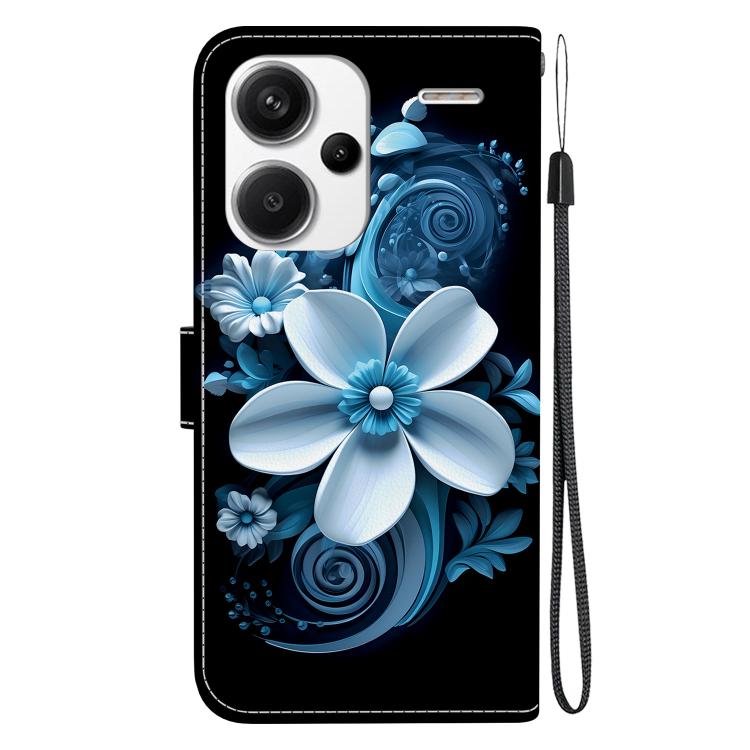 Funda de Cuero con Dibujo de Colores y Textura de Cristal para Redmi Note 13 Pro+ 5G (Orquídea Negra)