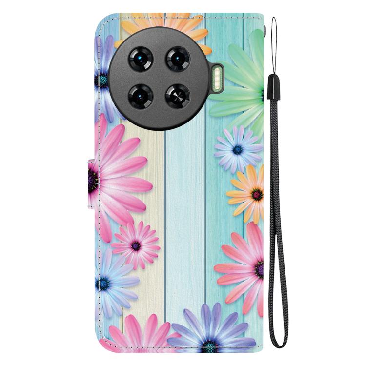Funda de Cuero para Tecno Spark 20 Pro+ 4G con Dibujo de Colores y Textura de Cristal (Girasoles)