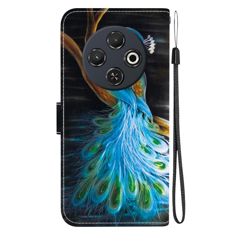 Funda de Cuero para Tecno Spark 30C con Dibujo de Colores y Textura de Cristal (Pavo Real)
