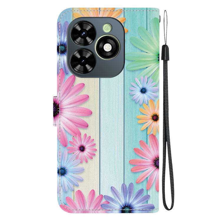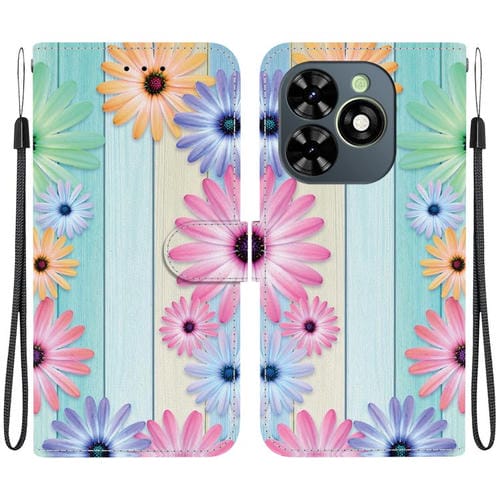 Funda de Cuero para Tecno Spark Go 2024/20C/Pop 8 con Dibujo de Colores y Textura de Cristal (Girasoles)