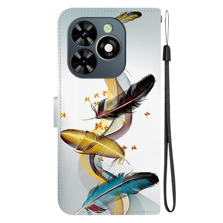 Funda de Cuero con Dibujo de Colores y Textura de Cristal para Tecno Spark Go 2024/20C/Pop 8 (Plumas de Mariposa Doradas)