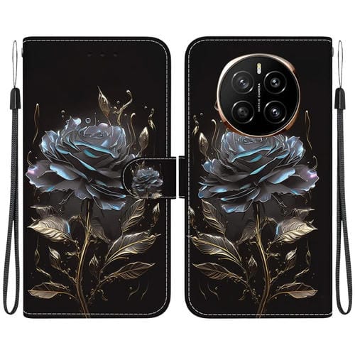 Funda de Cuero Honor Magic7 con Dibujo de Colores y Textura de Cristal (Rosa Negra)