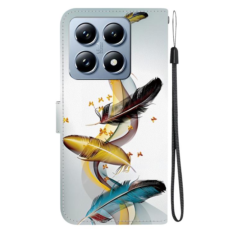 Funda de Cuero con Dibujo de Colores y Textura de Cristal para Xiaomi 14T Pro (Plumas de Mariposa Doradas)