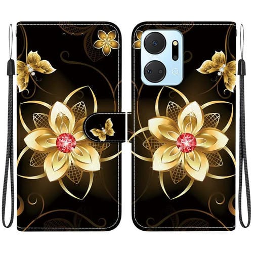 Funda de Cuero Honor X7A con Dibujo Color y Textura de Cristal (Flor Dorada)