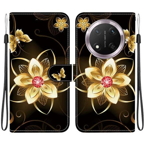 Funda de Cuero Honor X9C con Dibujo Color y Textura de Cristal (Flor Dorada)