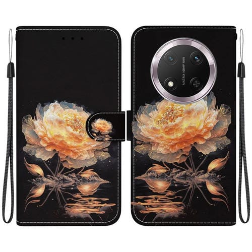 Funda de Cuero Honor X9C con Dibujo en Color y Textura de Cristal (Peonía Dorada)