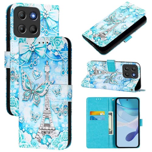 Funda de Cuero Motorola Moto G15 con Dibujo Mariposa en Forma de Torre (Liso)