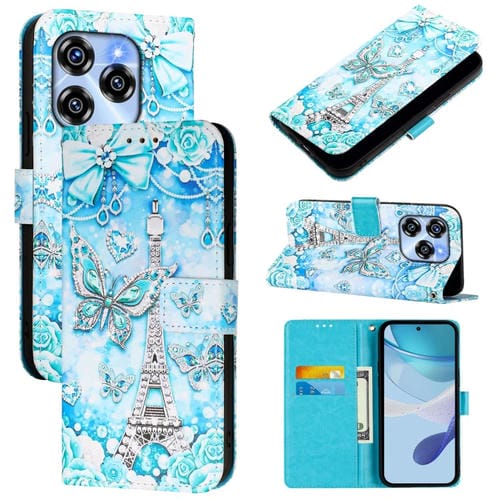 Funda de Cuero para Oukitel C50 con Diseño Mariposa en Forma de Torre (Liso)