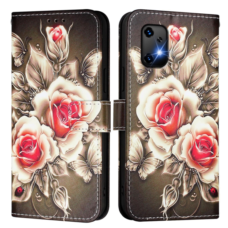 Funda de Cuero para Umidigi Bison X20 con Diseño de Dibujos Rosas Sobre Negro