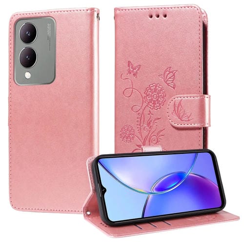 Funda de Cuero con Diseño de Mariposas En Relieve para Vivo Y17S / Y36I 5G / Y28 5G (Oro Rosa)