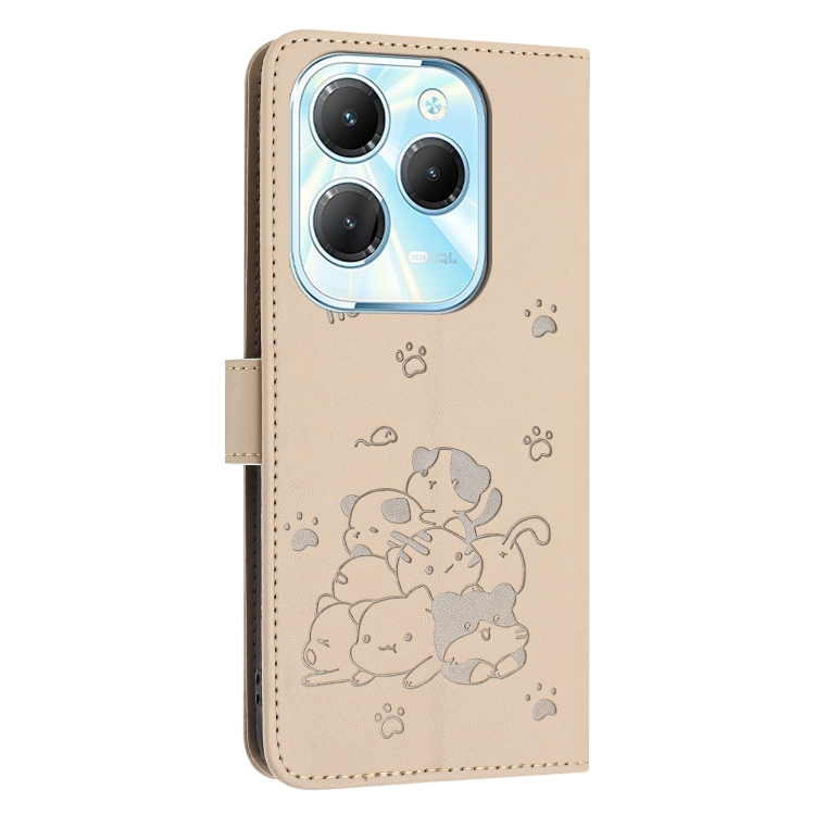 Funda de Cuero para Tecno Spark 20 Pro con Diseño de Gatito En Relieve y Cordón (Beige)