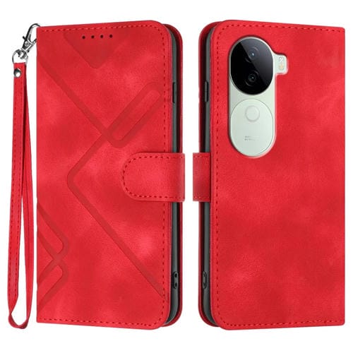 Funda de Cuero con Estampado de Líneas Indias para Vivo Iqoo Z9S/V40E (Roja)