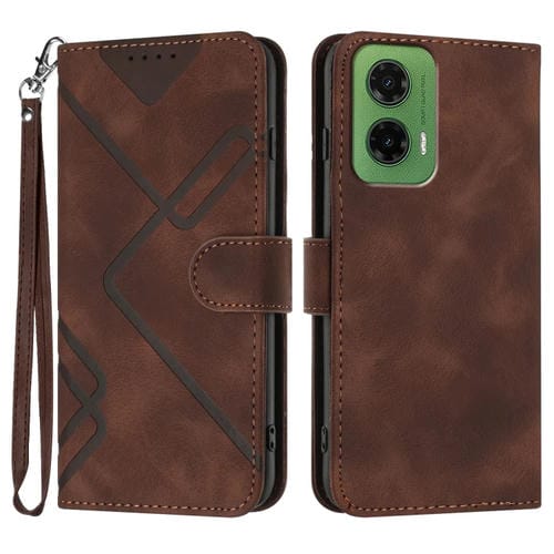 Funda de Cuero para Motorola Moto G35 con Diseño de Líneas y Tacto Suave (Café)