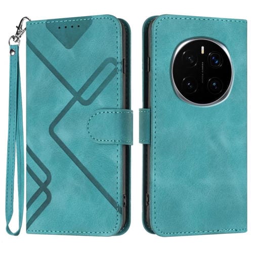 Funda de Cuero para Honor Magic7 Pro con Diseño de Líneas y Tacto Suave (Azul Claro)