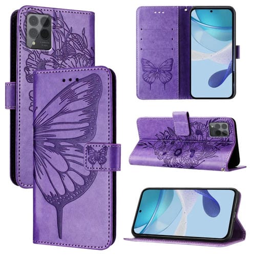 Funda de Cuero para T-Mobile Revvl 6 Pro/6X Pro con Mariposa En Relieve (Morado Claro)