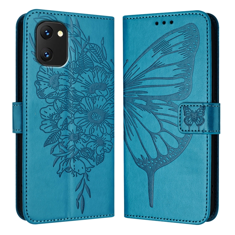 Funda de Cuero para Umidigi Power 7 y Power 7S con Mariposa en Relieve (Azul)