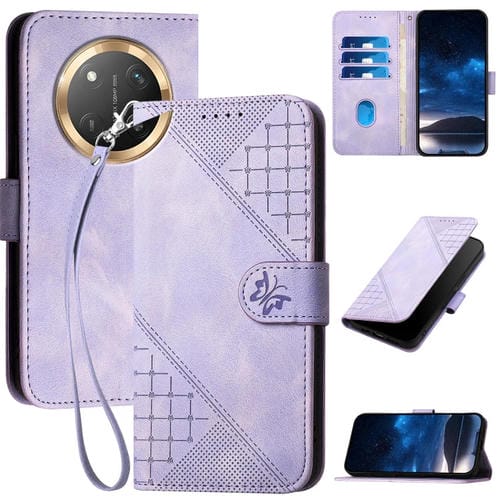 Funda Cuero Honor X9C Diseño Mariposa En Relieve y Cuadrícula con Cordón (Morado Claro)