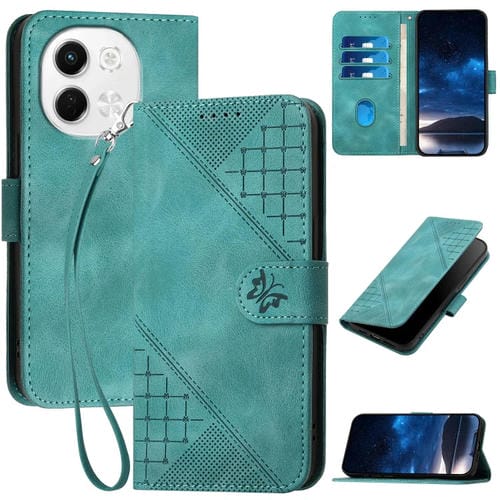 Funda de Cuero para Tecno Pova 6 Neo 5G Spark 30 5G con Diseño de Mariposa y Cordón (Azul Claro)