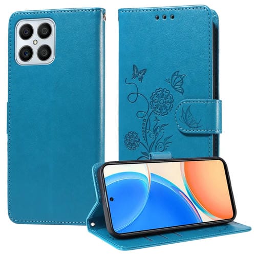 Funda de Cuero con Diseño de Mariposas y Flores en Relieve para Honor X8 4G / X30I / Play 6T Pro (Azul)