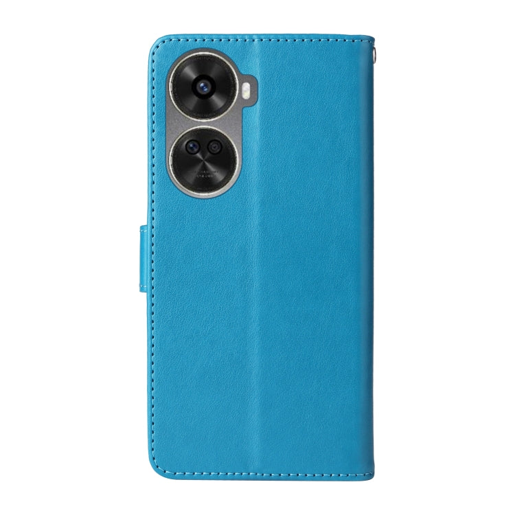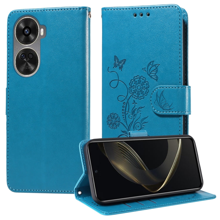 Funda de Cuero Huawei Nova 12 Se 4G con Diseño de Mariposas y Flores en Relieve (Azul)