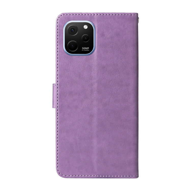 Funda de Cuero Huawei Nova Y61 Enjoy 50Z Diseño Mariposas y Flores En Relieve (Morado)