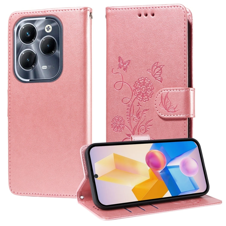 Funda de Cuero para Infinix Hot 40 y Hot 40 Pro con Diseño de Mariposas y Flores en Relieve (Oro Rosa)