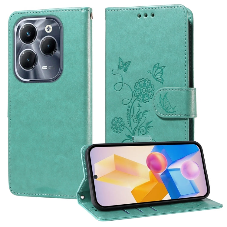 Funda de Cuero para Infinix Hot 40 y Hot 40 Pro con Diseño de Mariposas y Flores en Relieve (Verde)
