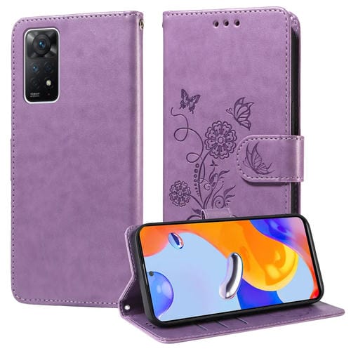 Funda de Cuero con Diseño de Mariposas y Flores En Relieve para Redmi Note 11 Pro 5G/4G (Morado)