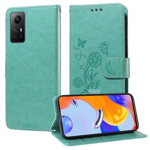Funda de Cuero con Diseño de Mariposas y Flores En Relieve para Redmi Note 12S 4G (Verde)