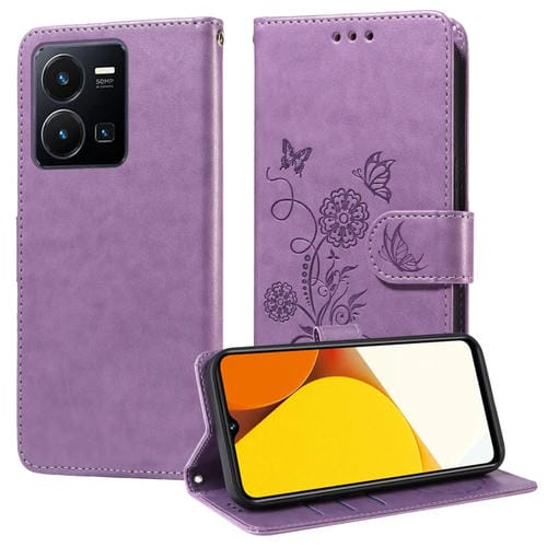Funda de Cuero con Diseño de Mariposas y Flores En Relieve para Vivo Y35 4G / Y22S / Y22 (Morado)