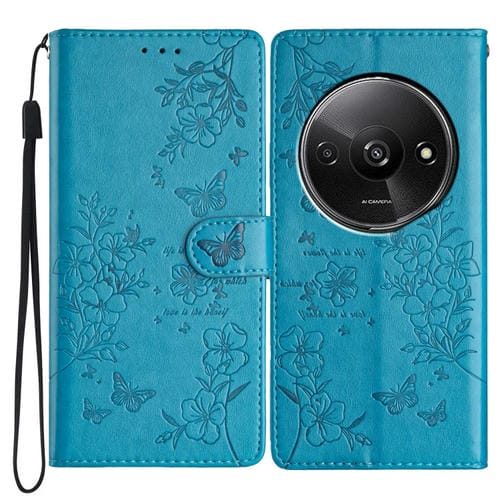 Funda de Cuero con Mariposas y Flores para Redmi A3 (Azul)