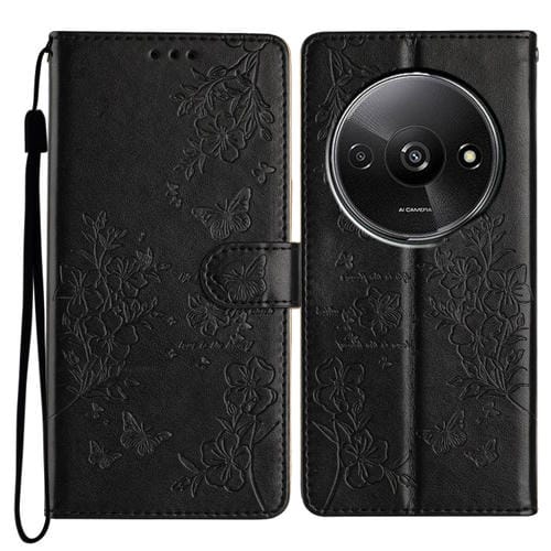 Funda de Cuero con Mariposas y Flores para Redmi A3 (Negra)